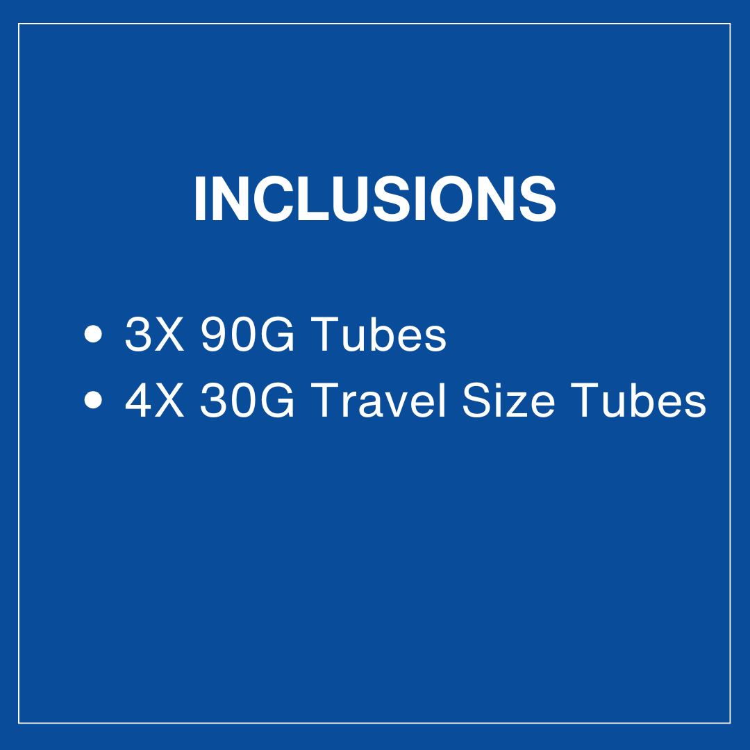 3X 90G Tube, 4X 30G Travel Size Tube